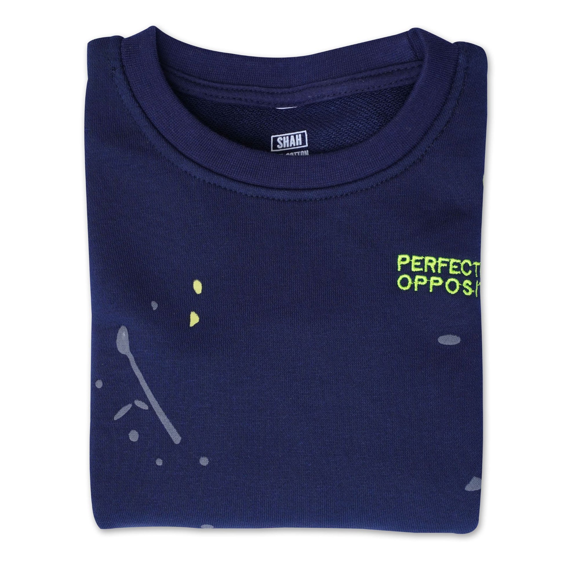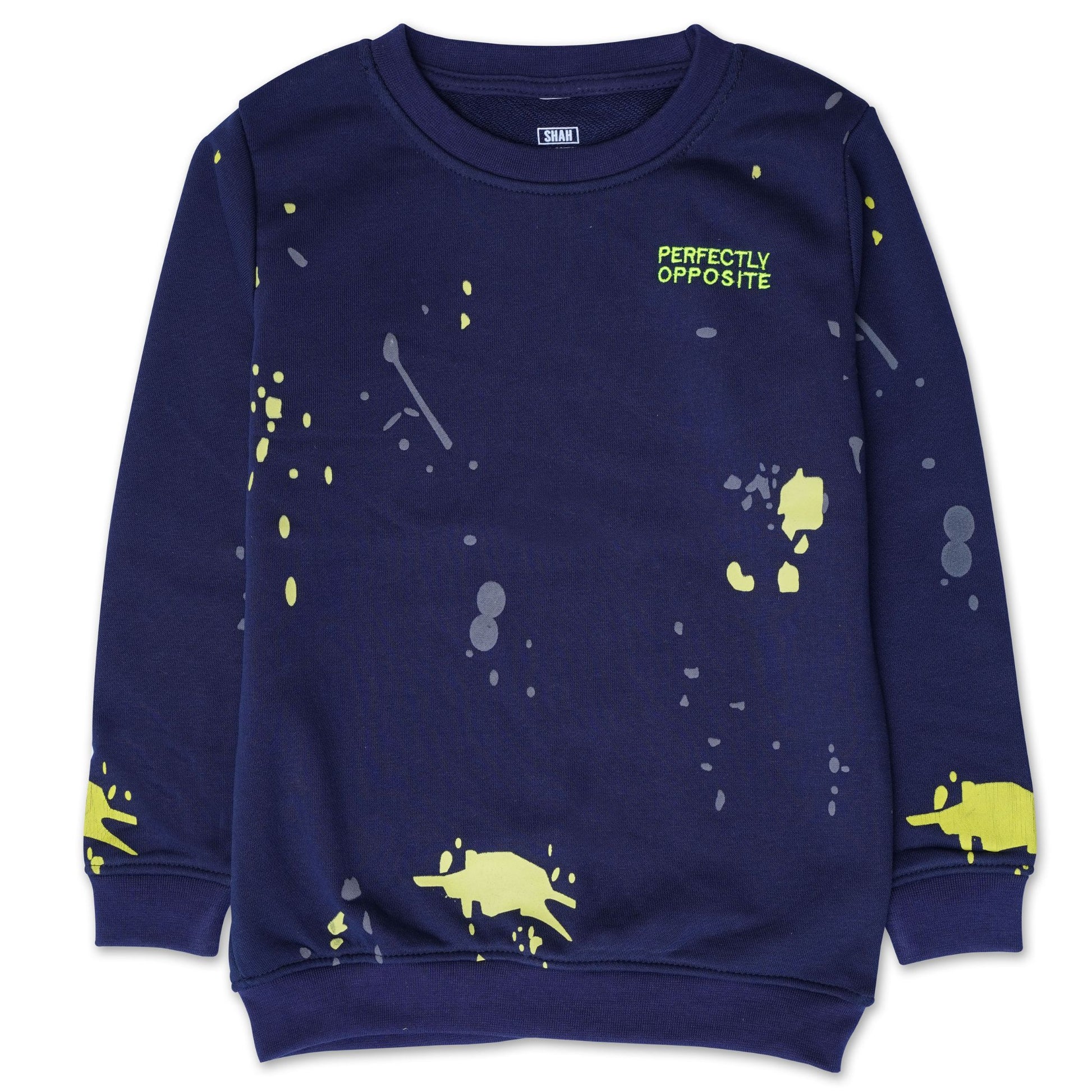Crafted for kids aged 2 to 10 years, this Electric Navy Printed Sweatshirt combines comfort and style perfectly. Made from a 50% cotton and 50% polyester fleece fabric, it offers a soft, smooth feel that keeps your child warm during winter. The vibrant neon splash print on a deep navy base adds a trendy, playful touch — perfect for both casual outings and cozy indoor wear.