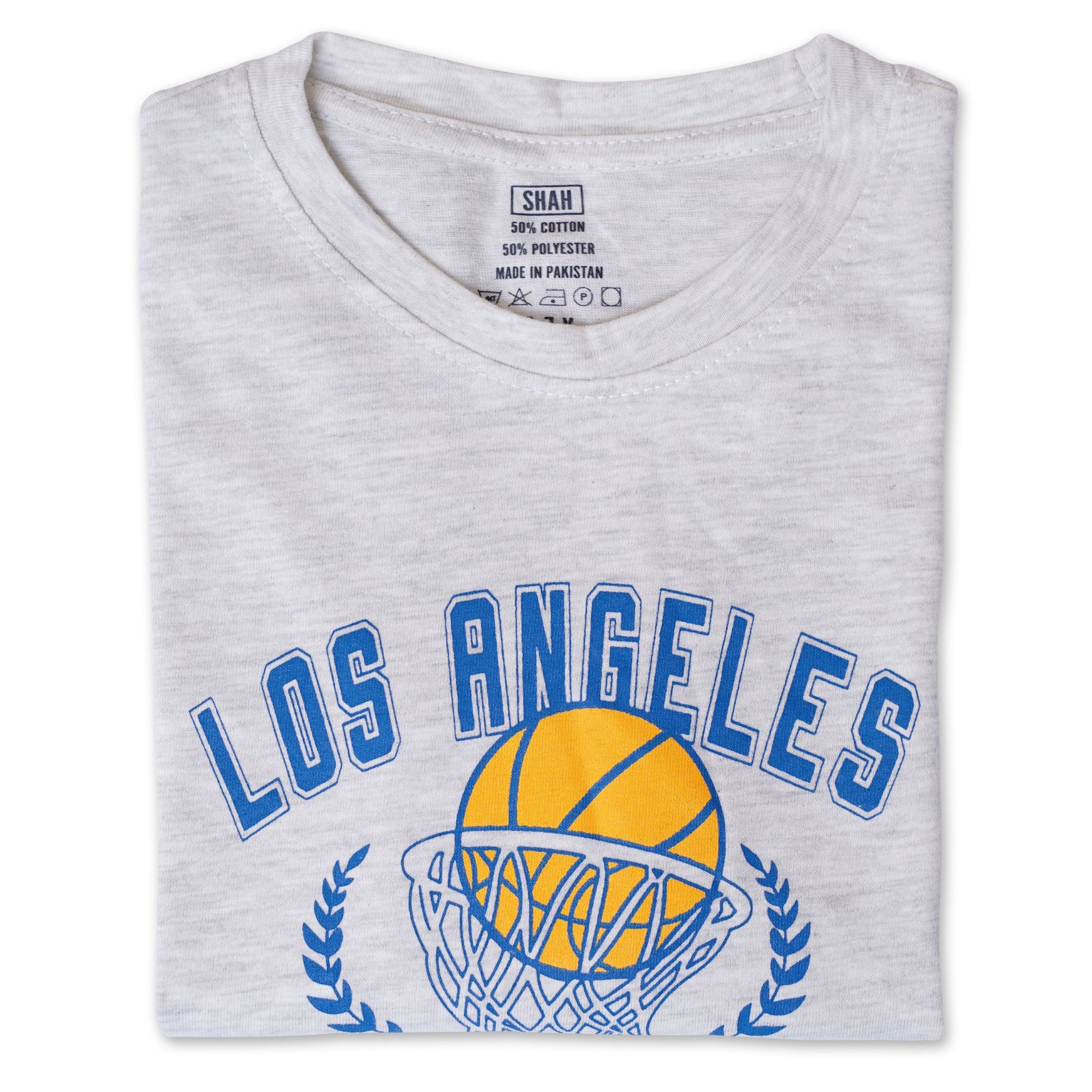 Sporty Style: Features a bold, vintage-style "Los Angeles" basketball graphic with a classic hoop and laurel wreath design.
