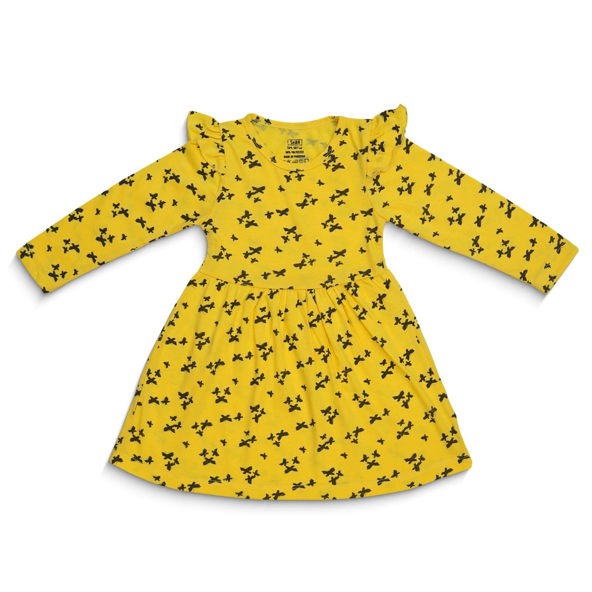 This frock is designed for all-day comfort, whether it's for a family outing, a birthday party, or just a day at home. The vibrant yellow color is sure to make your baby girl shine! Available in multiple sizes to ensure a perfect fit.
