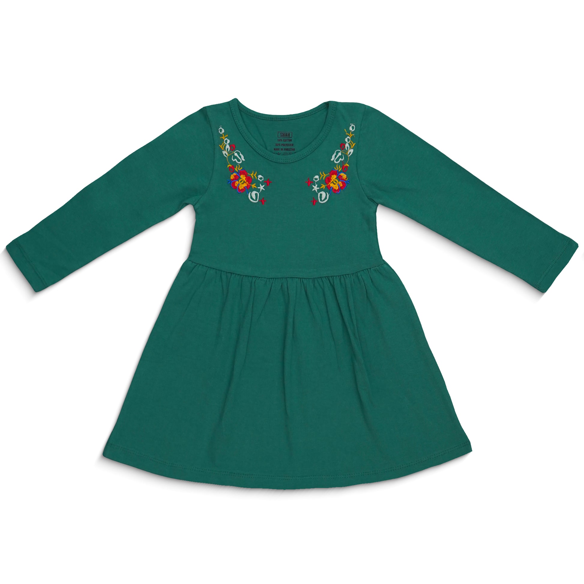 Title: Green Floral Stitches Dress | Hand-Embroidered Frock for Girls